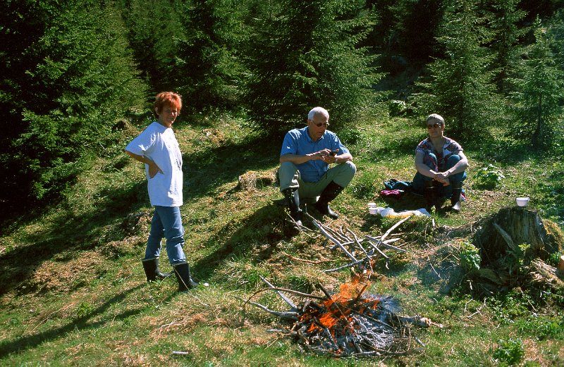 Rutt, Oddbjørn og Brit ved kaffebål i Nonshaugen 2. pinsedag 1999